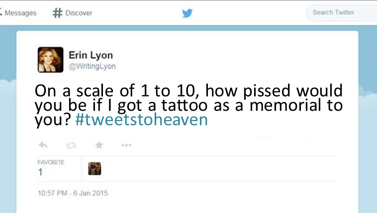 Your tweets to heaven are oddly haunting.